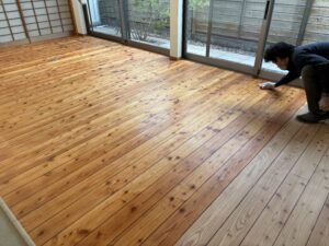 - 杉の無垢フローリングは研磨でどこまで戻せるのか