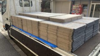 台車を使用した場合、積載重量や操作性にもよりますが、経験上1回で運べる枚数はおよそ40枚程度が目安となります。
