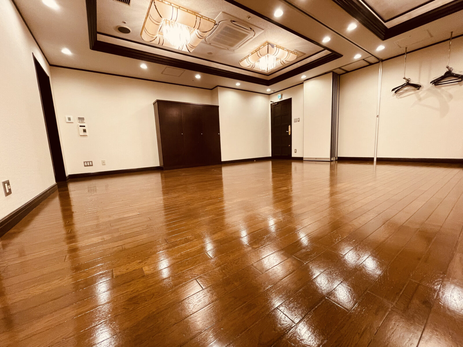 今回のラッセホールの改修工事は、無垢フローリングではなく木質系のフローリングでした。それでも正しい方法で手をかければ、美しさを甦らせることができるのです。
