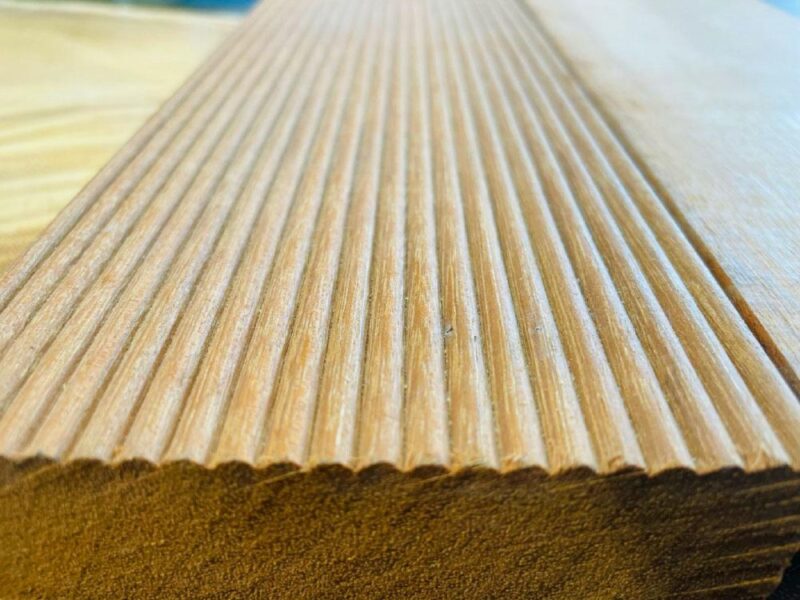 もう少し詳しく解説すると、ウッドデッキの「RIB加工」とは、木材の表面に一定間隔で溝や凹凸を付ける加工のことを指します。