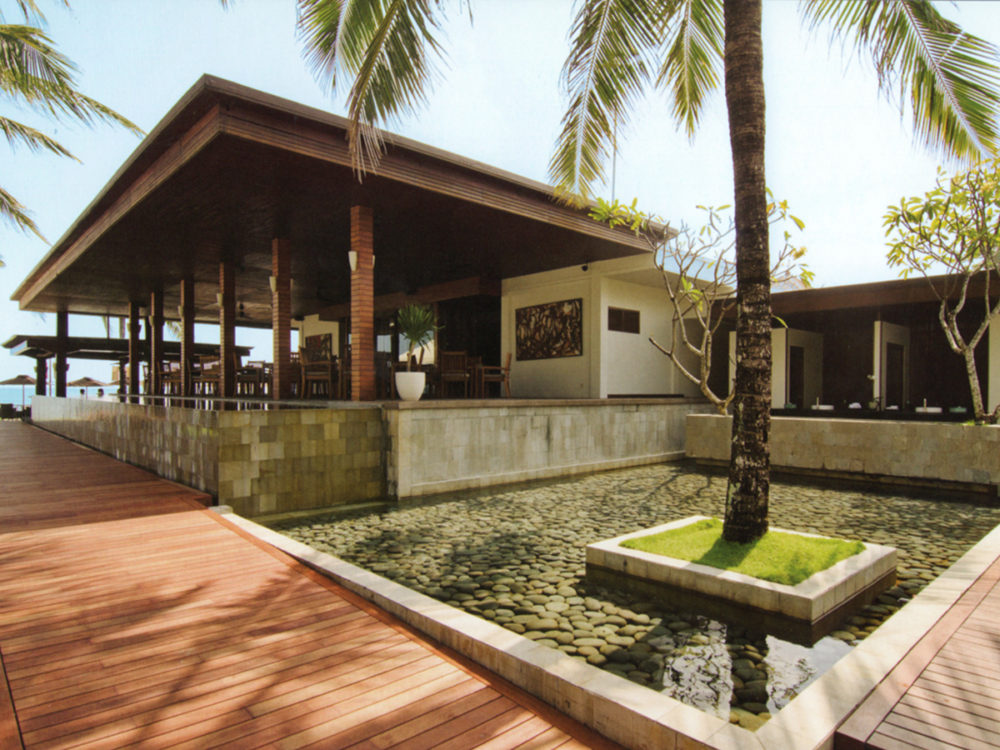南国の太陽とヤシの木に囲まれたバリ島のリゾートでも、ノンビス工法メルバウデッキが採用されています。