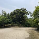 本堂下の山門近くにある広場に五重塔があり、その先にお目当てのタブノキがあります。