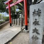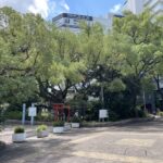 この靭公園は南北に走る大動脈なにわ筋によって東園と西園に分かれており、その西園のなにわ筋に面した角にうつぼ楠永神社があります。