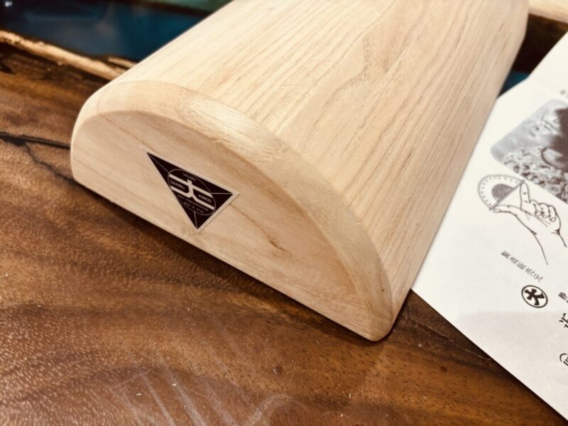 丸太を割ったようなかまぼこ型で「総桐製」と書いておりますが、薄い桐の板を合わせており、中身は空洞になっていて非常に軽いです。