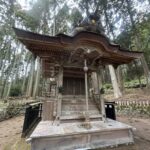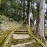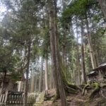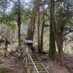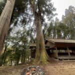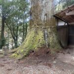 鳥居をくぐり苔むした階段を上ると再び鳥居があり、その正面にはご本堂、そして左手側に巨大なスギが鎮座しています。