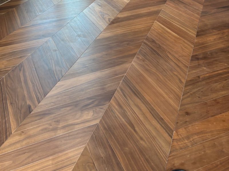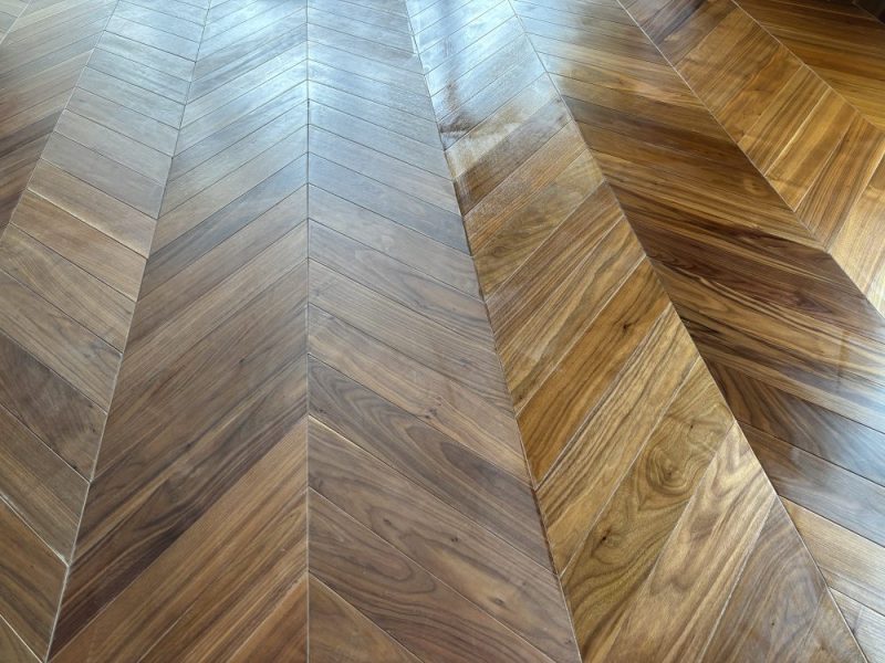 本日はブラックウォルナットのフレンチヘリンボーンフローリングの再塗装をご依頼頂き大阪府の現場に行って来ました。