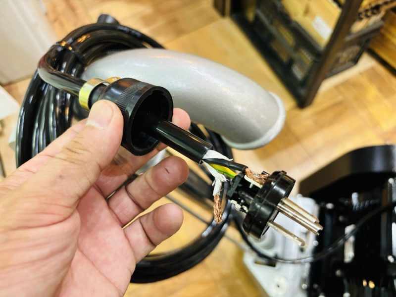 海外で作成するにあたり、綿密な打ち合わせと写真や動画を交えたやり取りで無事に日本に到着したものの、単相200Vで事務所には繋げるコンセントがないため「早く動かしたい!」と思いは募るばかり。