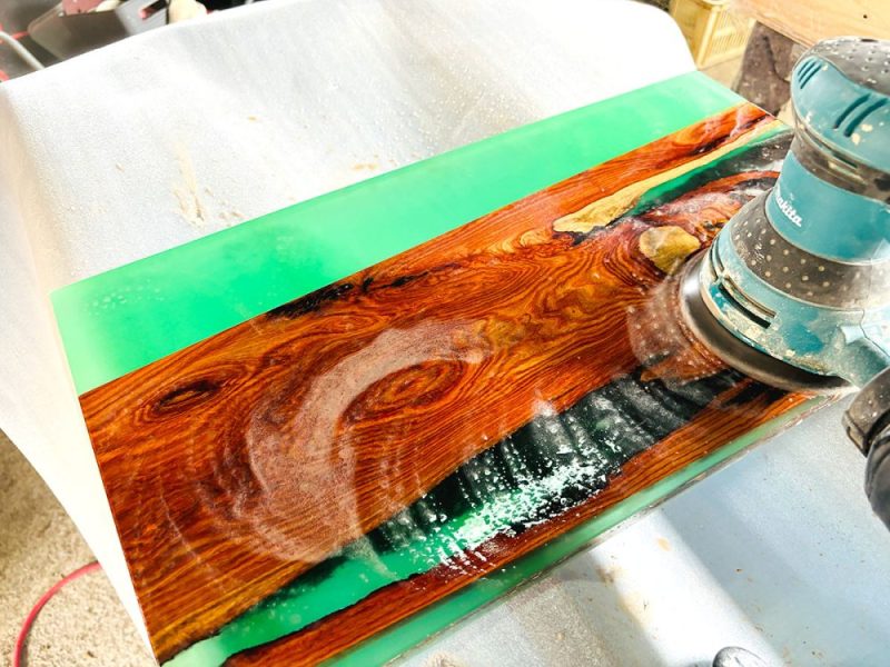 レジンテーブルのクオリティを左右する仕上げ研磨の工程は決して楽はできませんが、プロがしっかりとサポートするので一緒に頑張りましょう!