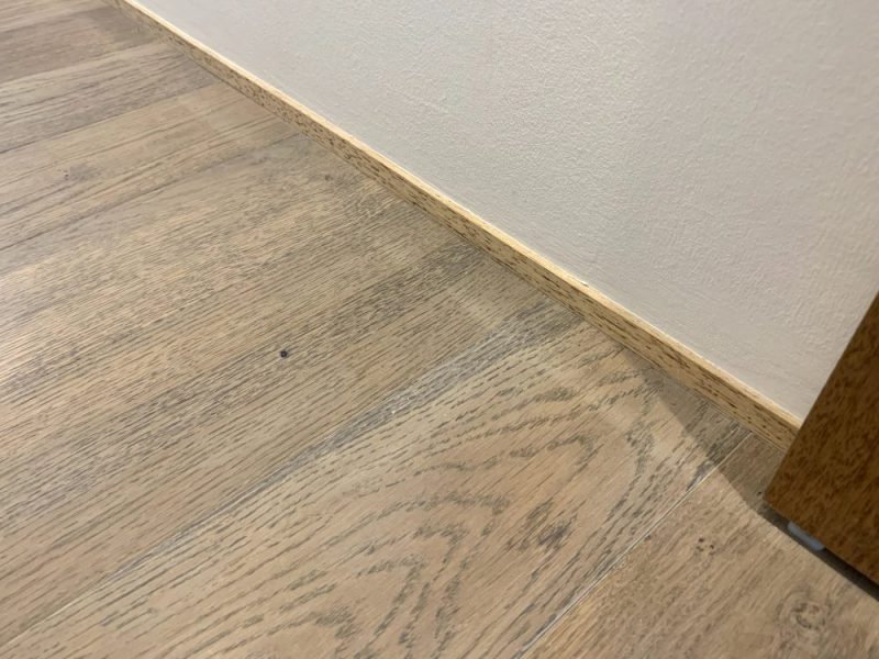 最近、巾木をなくして壁にピッタリと床材をつけたい…という方も多いのですが無垢フローリングにとって巾木下は伸縮の「逃げ場」なので非常に重要です。