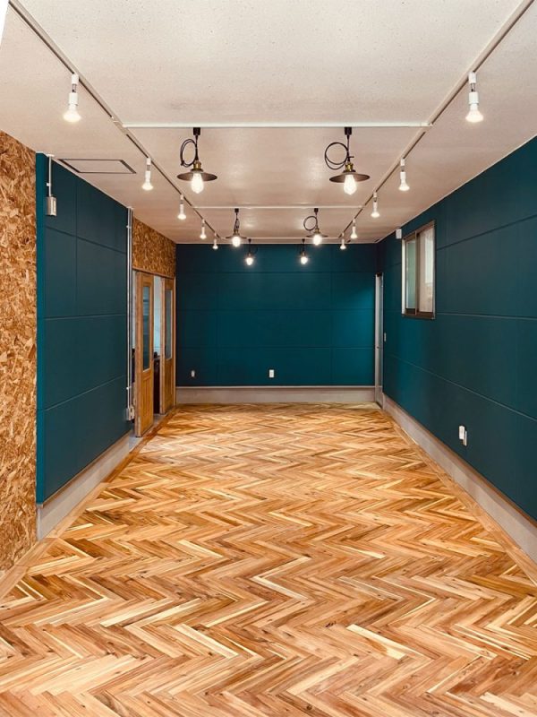 例えばヘリンボーンタイプでアカシアの色味や杢目を活かして、独創的なパターンでフローリングを張ると、他にはない空間が完成します。