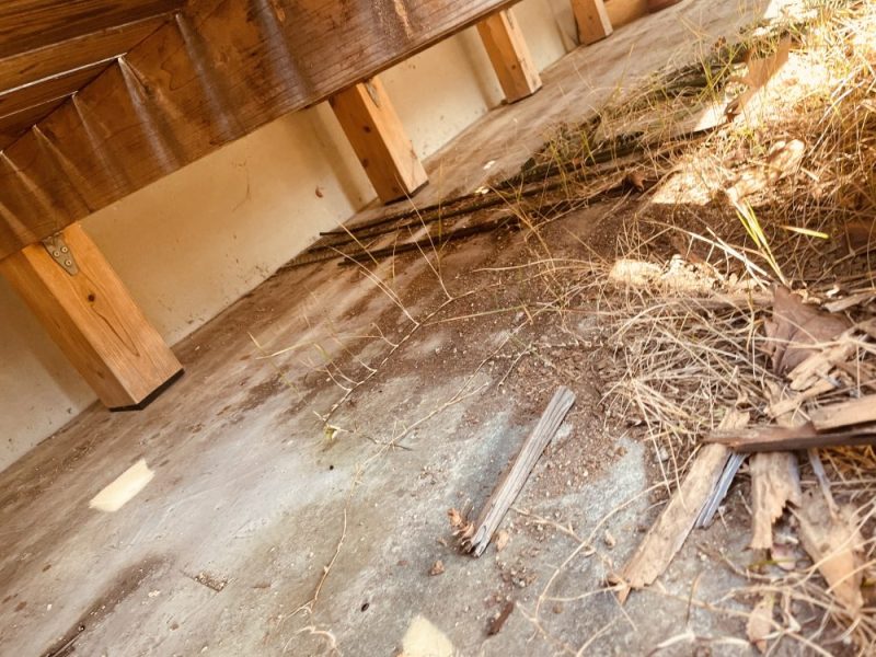 対策: 必ずコンクリート基礎や束石を使用し、デッキ下に十分な空間を確保してください。