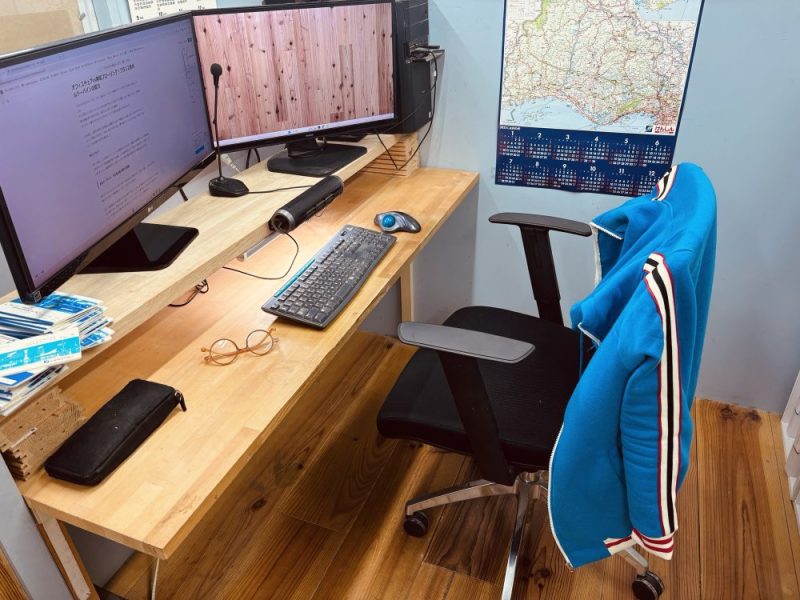 デスク周りといえば、キャスター付きの椅子が行ったり来たりする場所。そして僕はというと、80kg前後の体重を支える椅子に座り、毎日その上をゴロゴロ移動中。