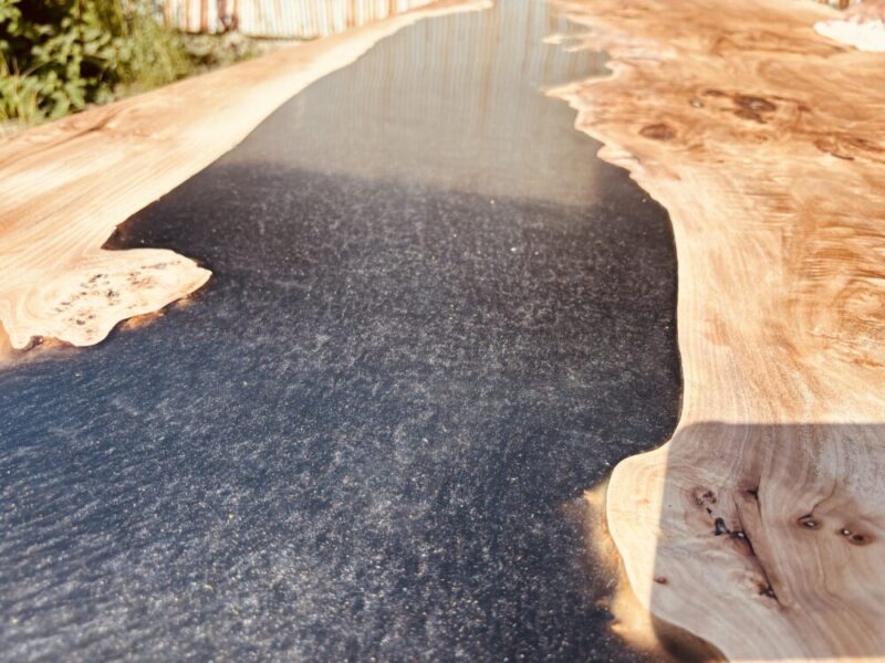 選ばれた木材は、個性的な表情が人気の「ポプラ」。そこにブラックとシルバーのレジンを流し込むことで、深みと輝きを兼ね備えた、唯一無二の作品に仕上がりました。