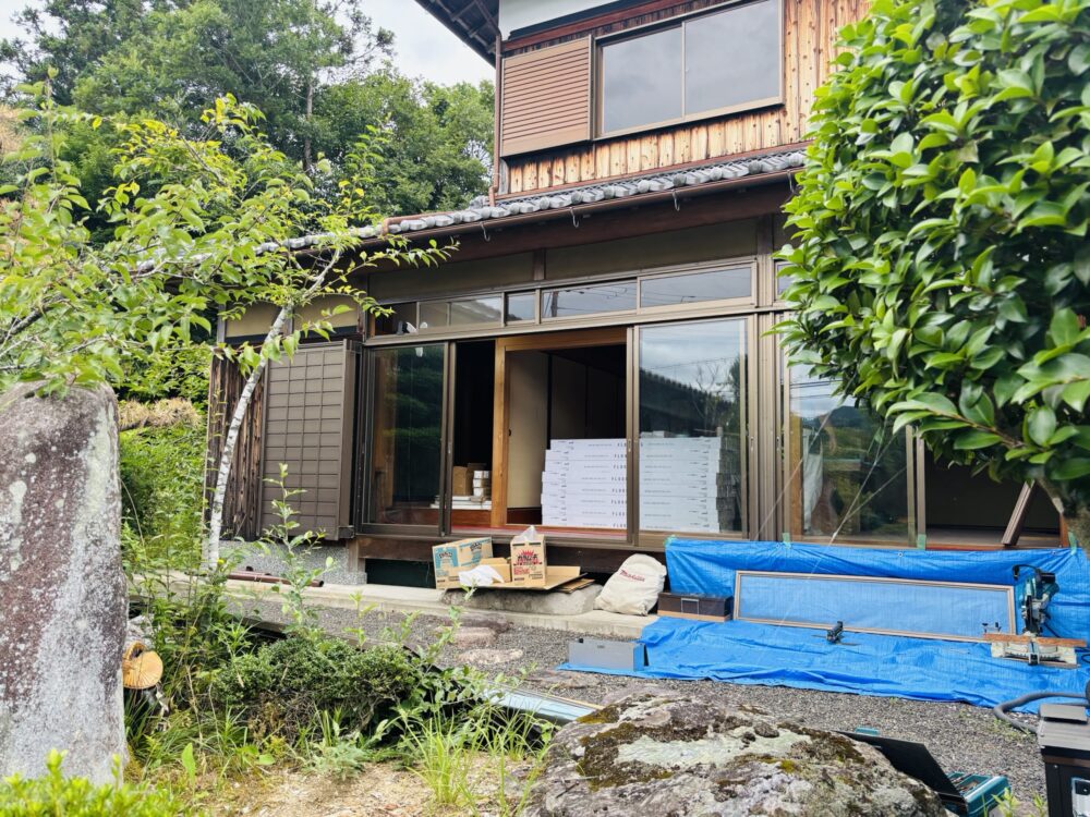 京丹波の豊かな自然の中に、こうして和と洋が融合した美しい空間が少しずつ形になっていく過程に携われることは、無垢材を扱う私たちにとって大きな喜びです。