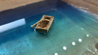 昨日に続き本日も「世界にひとつだけのテーブルを作る」。その言葉がふさわしいレジンテーブルが、またひとつ完成しました。