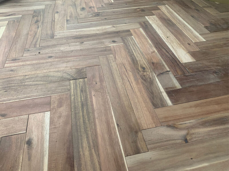 エコロキアで取り扱っているのは、FSC認証などを取得した植林アカシア材を使用した無垢フローリング。乱尺、ユニ、ヘリンボーン、パーケットなどのタイプで、塗装仕上げもお好みに合わせて対応しています。
