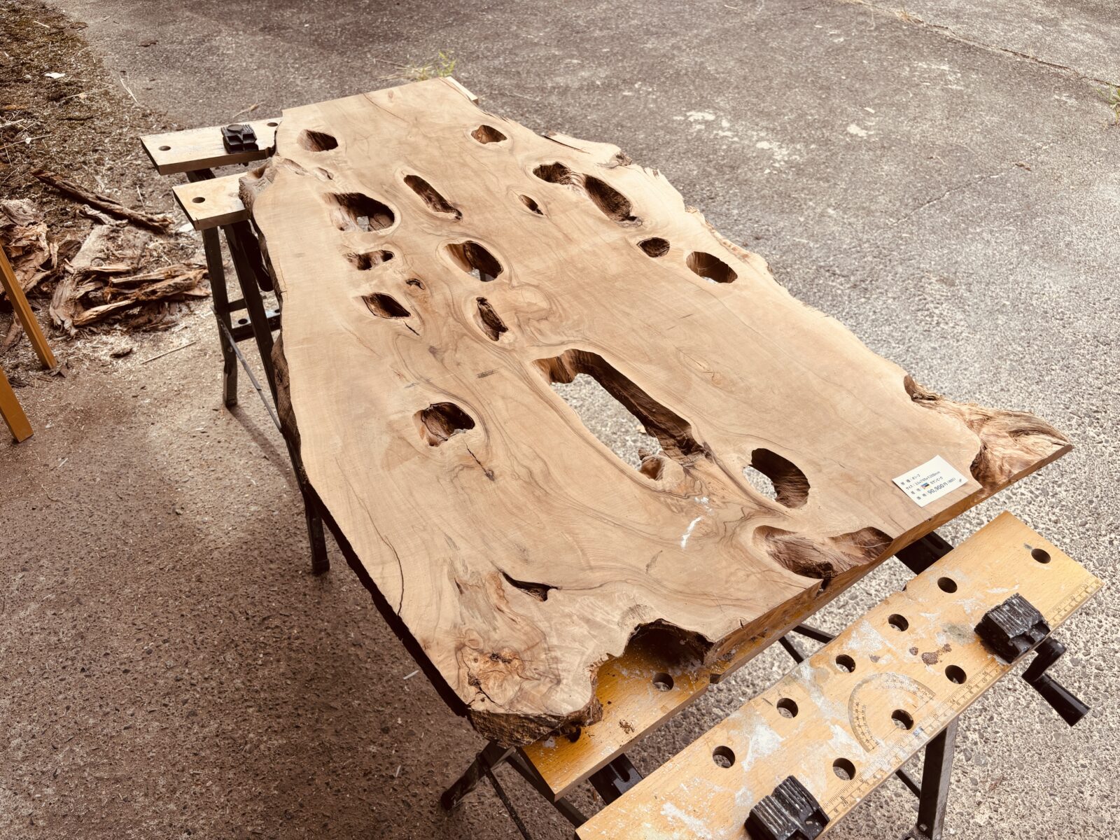 ただし、すべてをレジンで埋める必要はありません。杢目の美しい板や十分なサイズのある板は、一枚板テーブルとしても十分に価値があります。無垢材ならではの迫力や重厚感は、人工的な加工では決して再現できません。特に広葉樹の板はダイニングテーブルやカウンターに仕上げると圧倒的な存在感を放ちます。