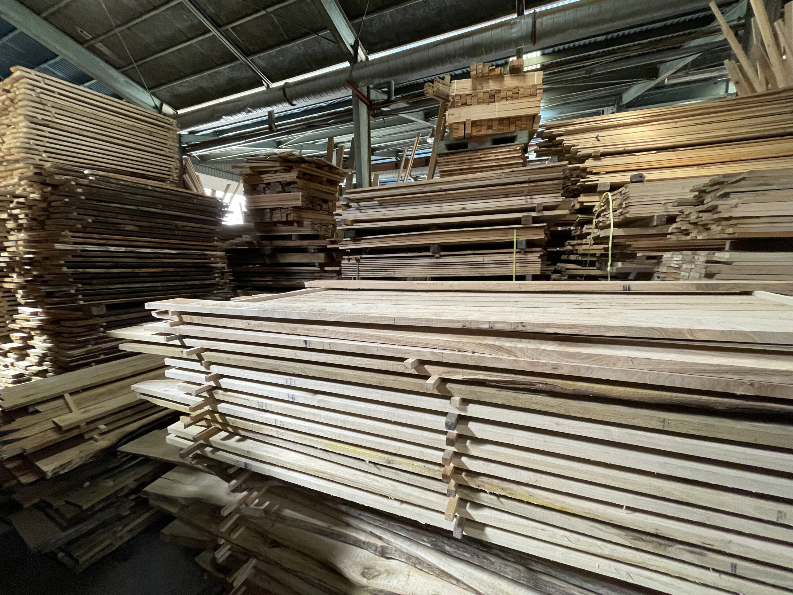 また、オークやアカシアなど乾燥が難しい材の場合は、耐久性があり変形しにくい材の桟木を選ぶことで跡の発生を予防できます。こうした“桟木の最適化”はコストが大きくかかる対策ではありませんが、品質安定には非常に大きな効果を発揮します。