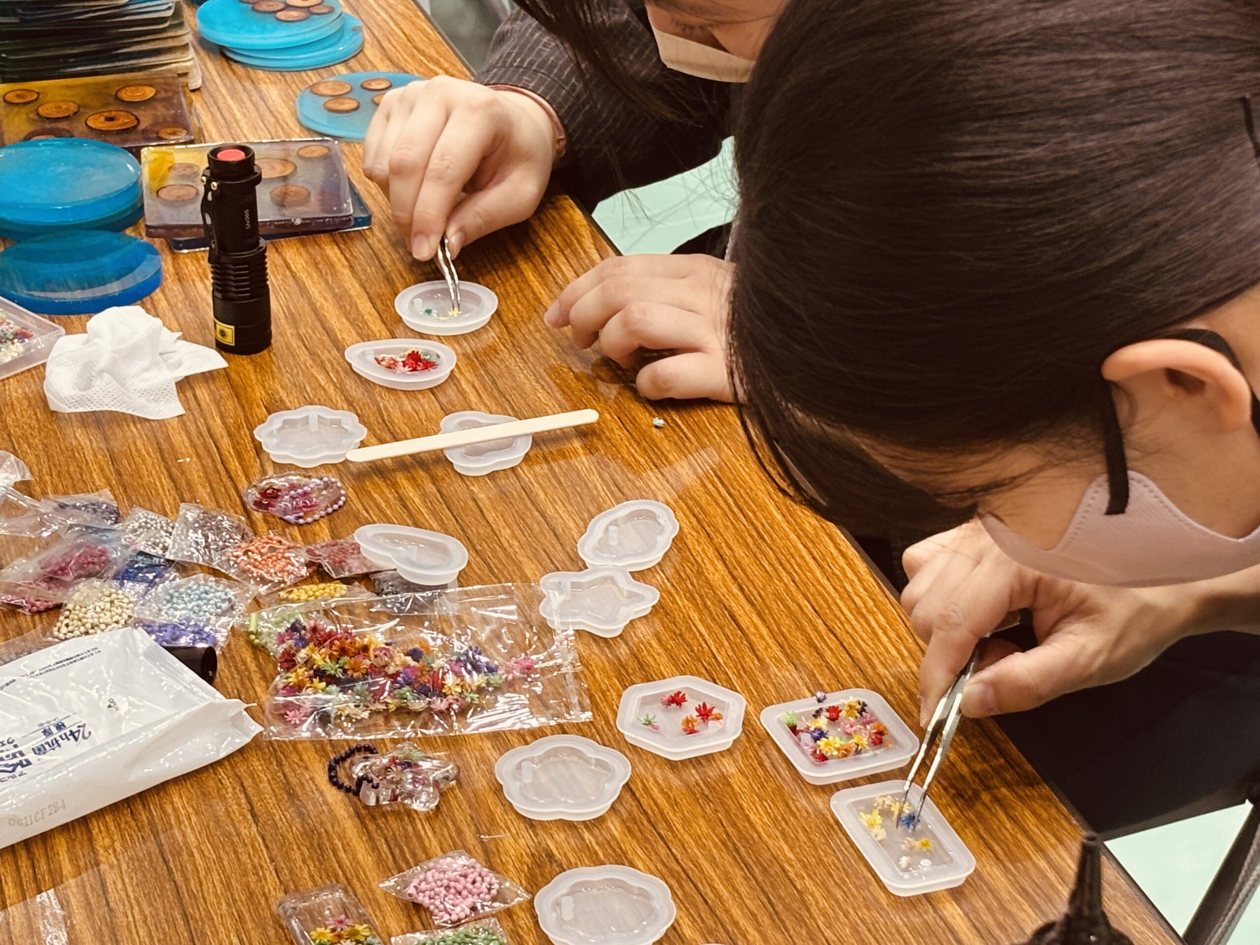 真剣な表情でレジンに向き合う姿に、こちらまで嬉しくなりました。