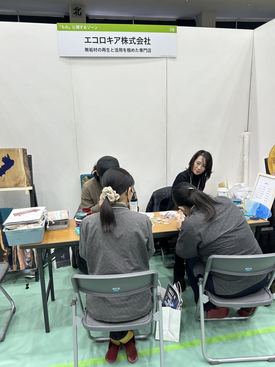 レジンキーホルダー制作体験とレジン作品展示を行うエコロキアのブース風景 コラム