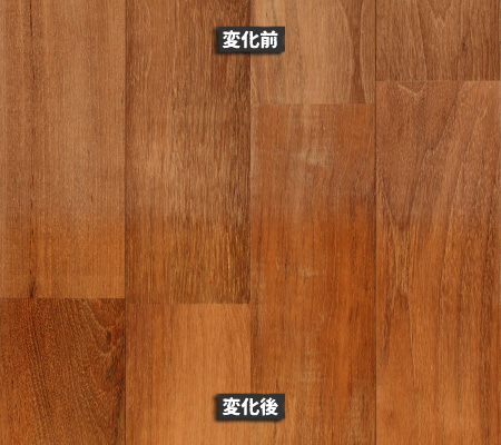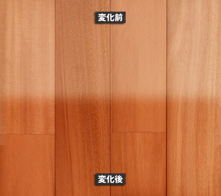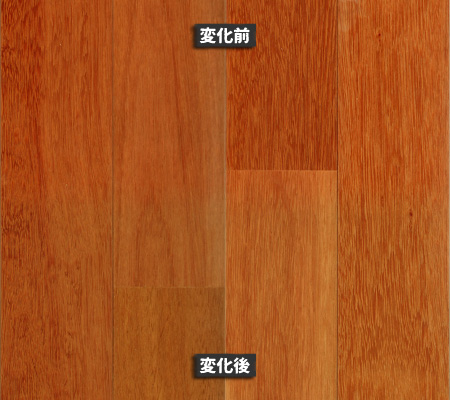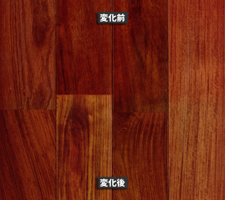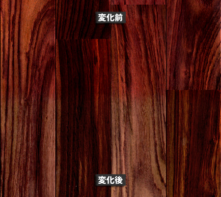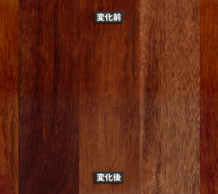 南洋材の経年変化は、針葉樹や一般的な広葉樹と比べても「色の深まり方」がはっきりしています。