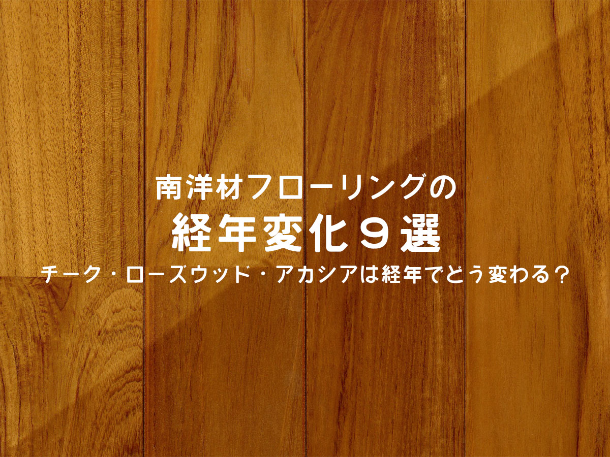 今回は、アカシア・花梨・ローズウッド・メルバウ・マホガニー・インドネシアチーク・ミャンマーチーク・ケンパス・アジアンウォルナットなど、南洋材フローリング9種のリアルなビフォーアフターをもとに、専門店の視点から経年変化の特徴を解説します。