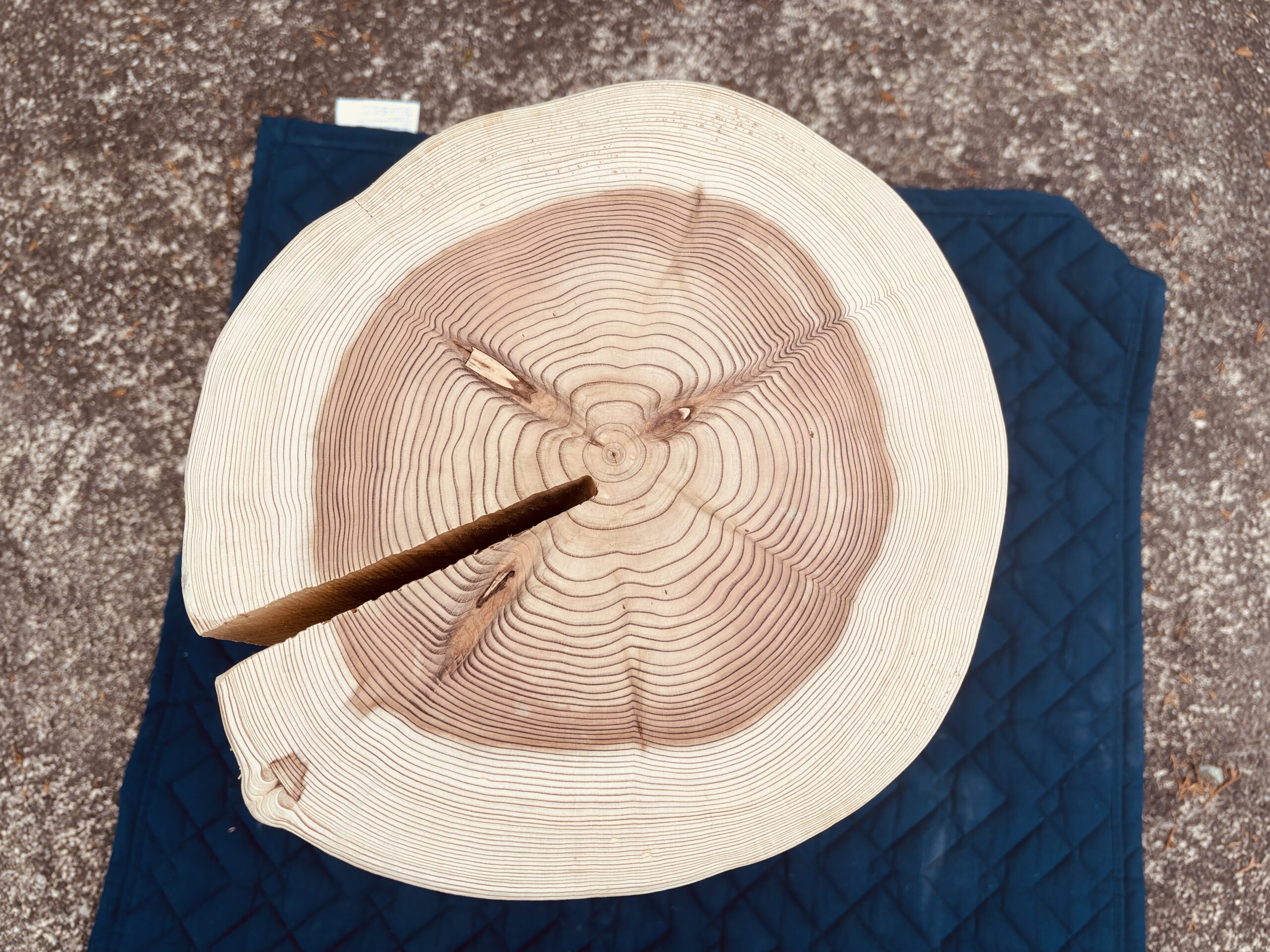その結果、外周部や見せたい面に不要な割れが入りにくくなり、素材としての扱いやすさが向上します。特に家具製作においては、丸太のどの面を意匠として見せるかが重要になるため、背割れの位置を把握したうえでデザインを組み立てることが可能になります。