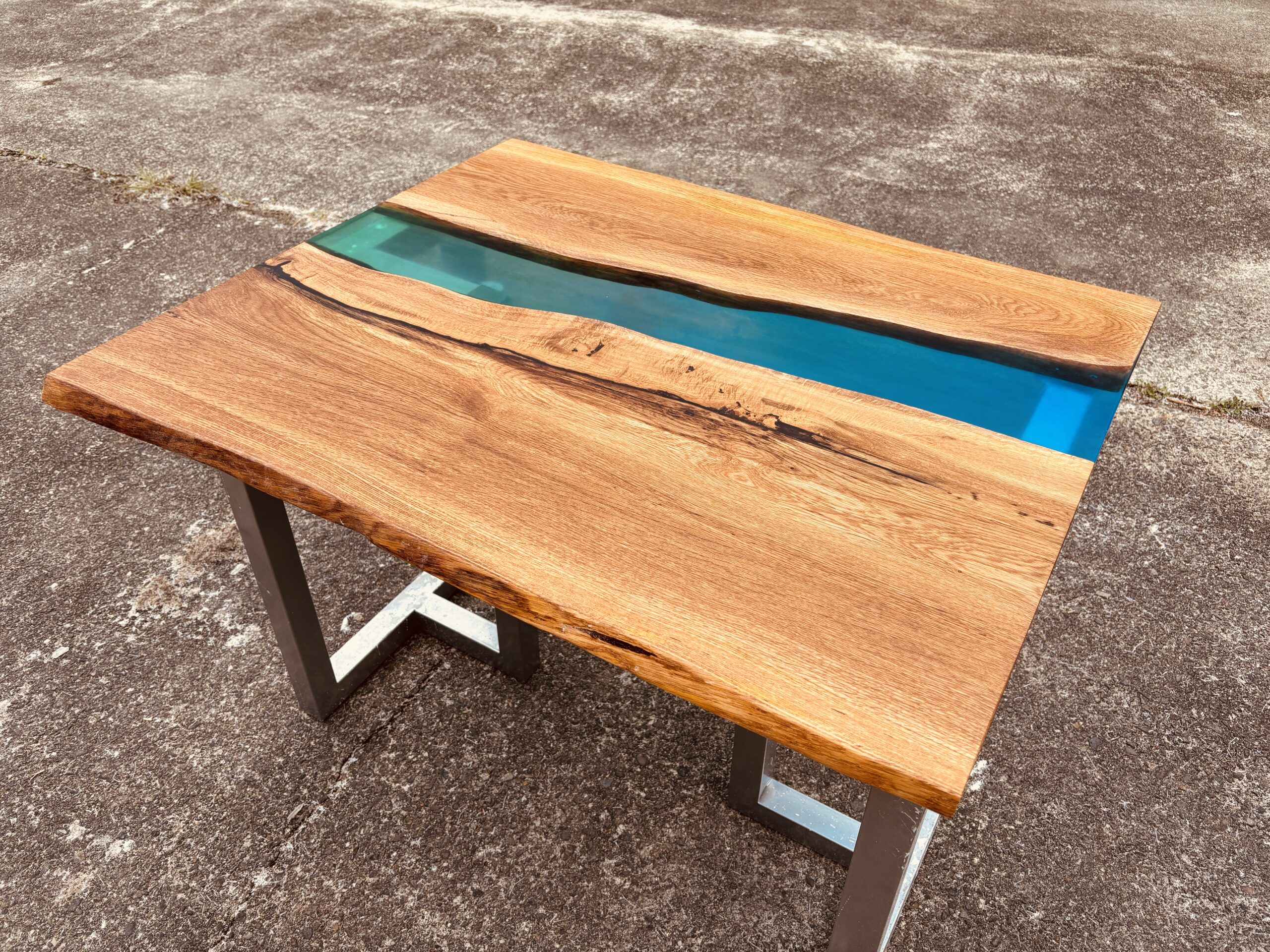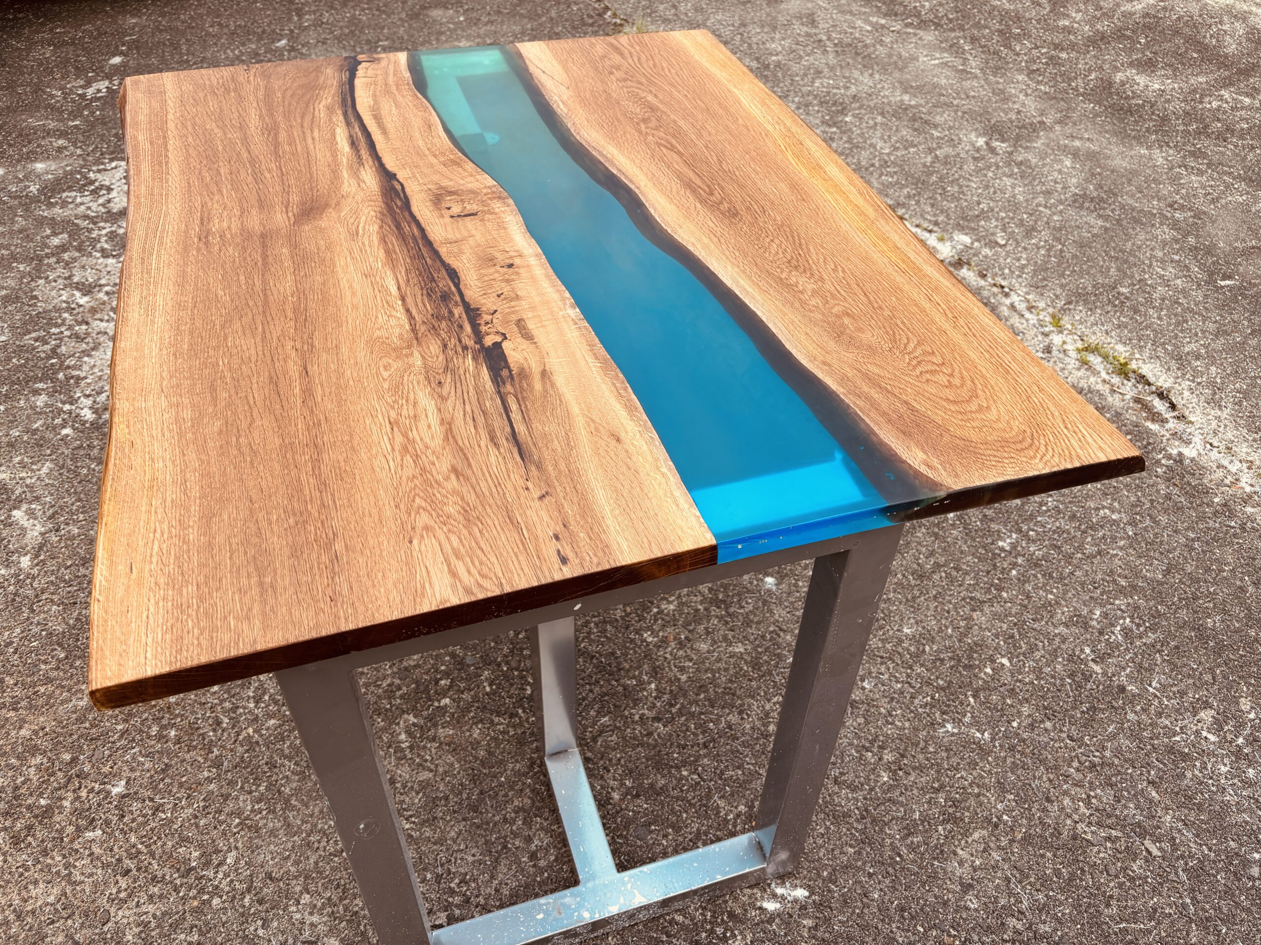 市場に出にくいサイズ。両耳を残せるチェスナット一枚板で作る、贅沢なレジンテーブル