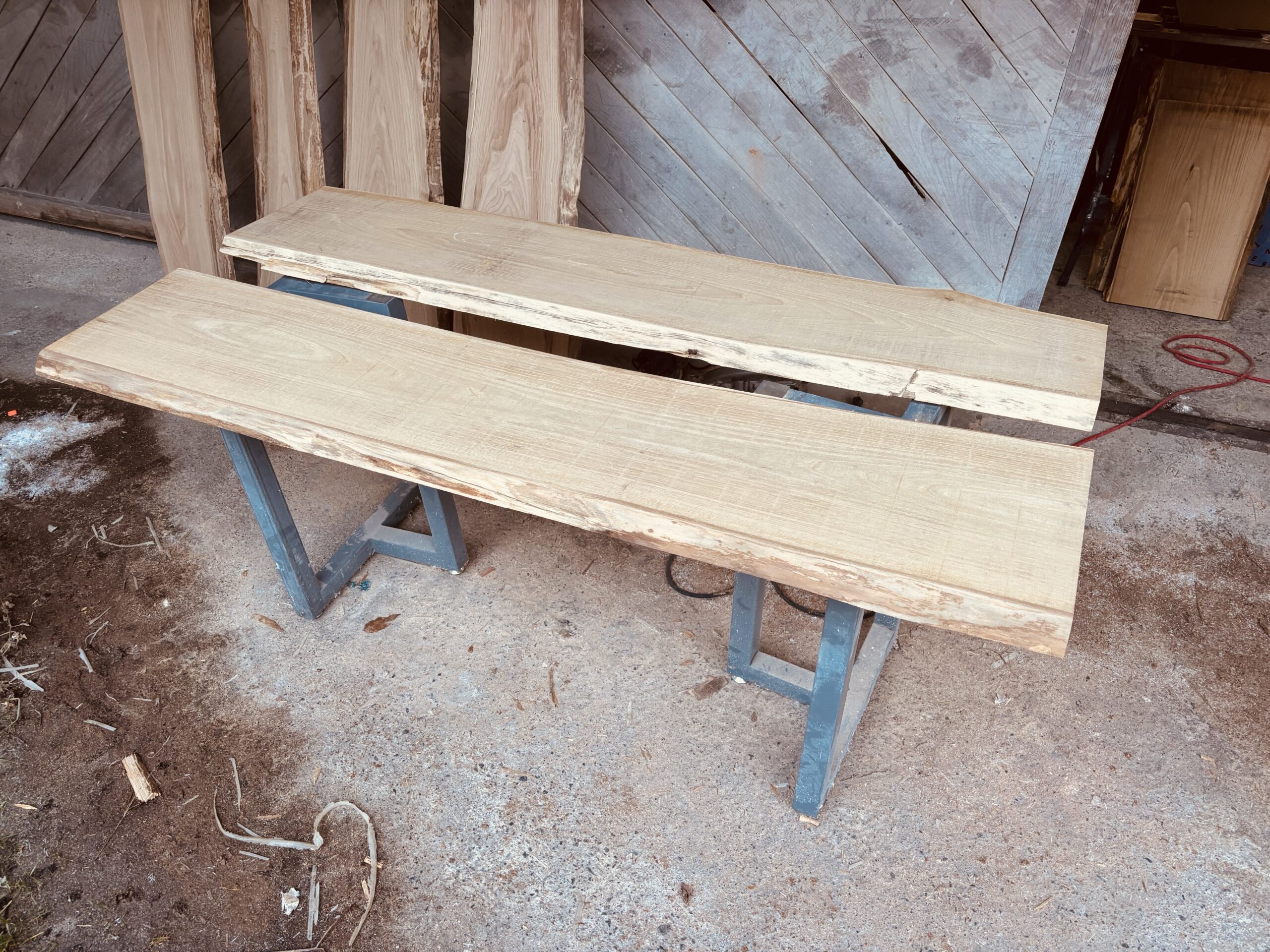 今回仕入れたチェスナットの一枚板はサイズ・形・両耳の残り方、すべてが揃った素材です。