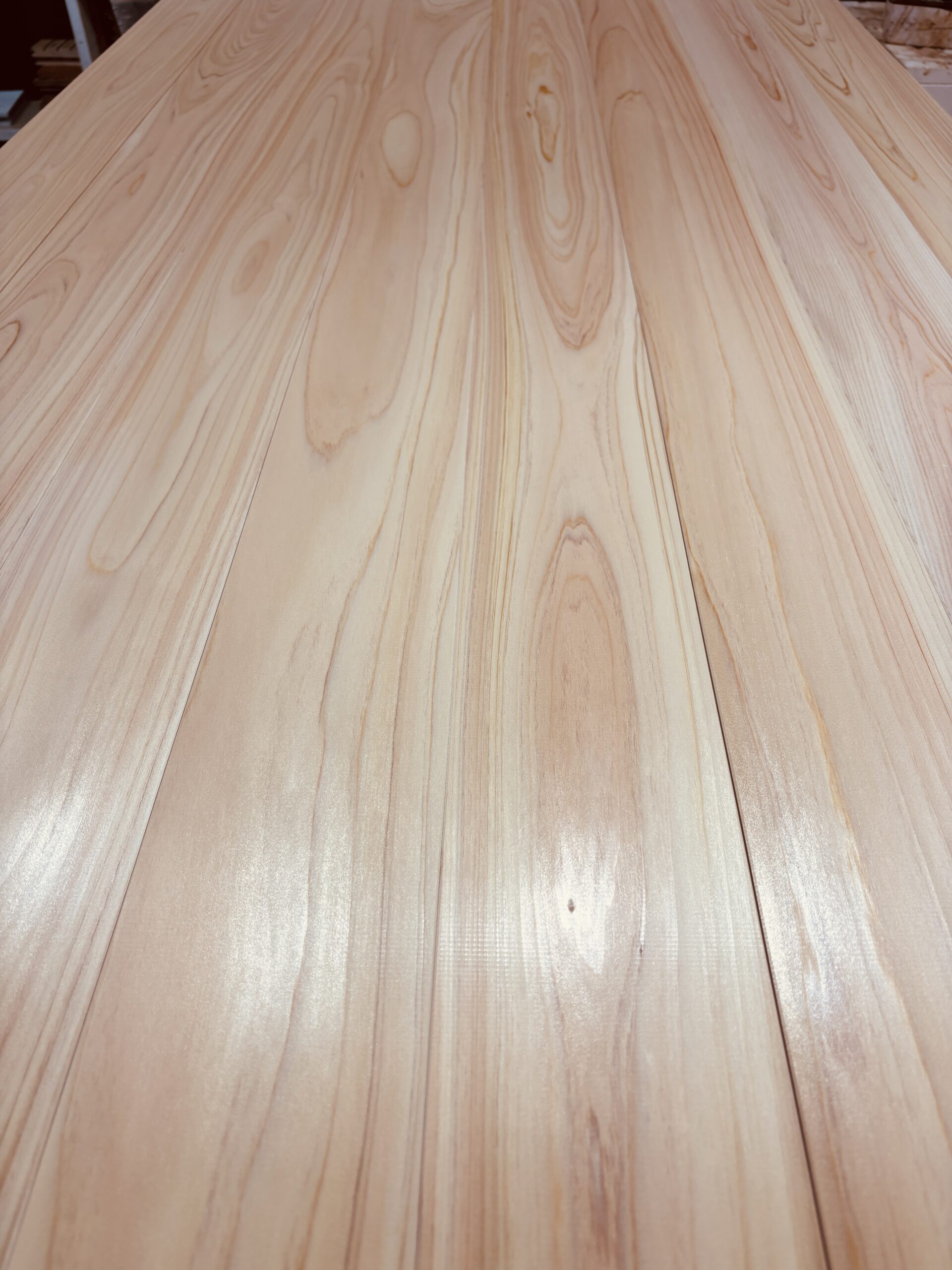 無節の吉野ヒノキは、線の通り方が素直で、面としての光沢が揃いやすい。その反面、空間によっては“均一すぎてのっぺり”に感じることもあります。