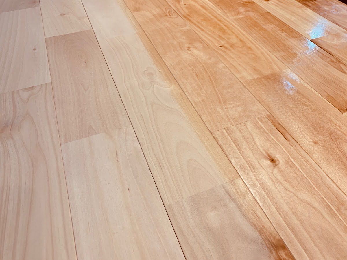 今回ご紹介するのは、このシルバーチェリーの無垢フローリングに自然塗料「春風」のクリア塗装を施した事例です。