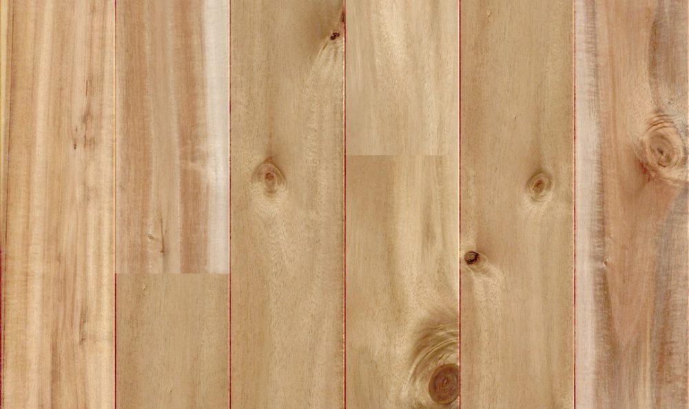 アカシアはベトナムを中心に流通する広葉樹で、濃淡のある褐色と力強い杢目が特徴です。無垢材ならではの存在感がありながらも、適度な硬さを持ち合わせているため、住宅の床材として人気が高い樹種です。