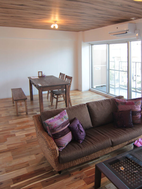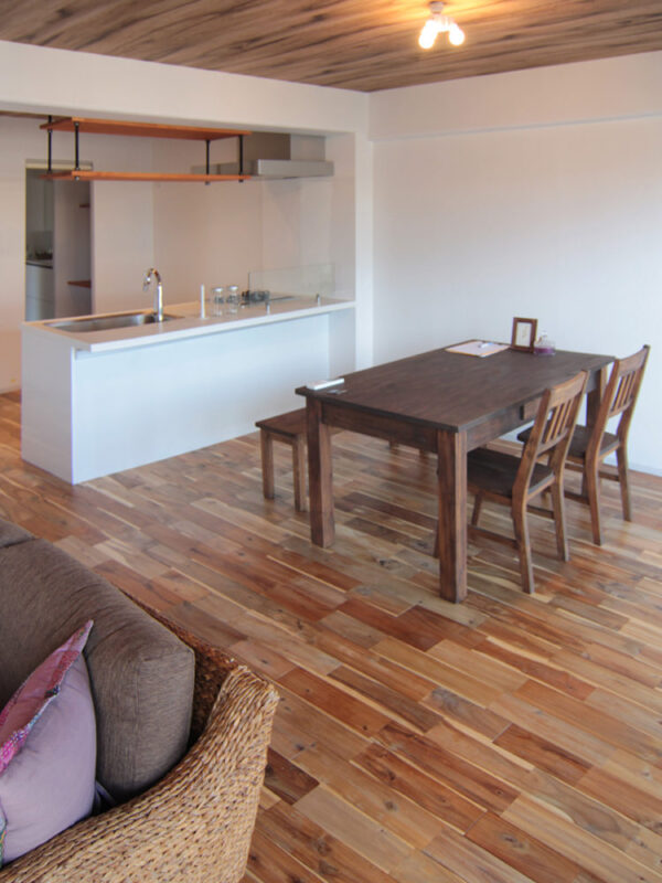 大阪府大東市の分譲マンションリノベーションで採用いただいたのは、アカシア ユニ 無垢フローリング【ラスティック】15×120×1820mm 自然塗料(透明つや消しオイル仕上げ)。