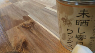 今回の施工では、自然素材100%の「未晒し蜜ロウワックス」で仕上げています。このワックスは木の呼吸を妨げず、木材の質感をそのまま活かす仕上げが可能。シルクのようになめらかな足触りが特徴で、素足で歩く生活をより豊かにしてくれます。