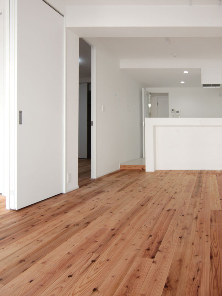 しかし今回、大阪府大阪市西区にある賃貸マンション「ガーデンハイツ江戸堀」様では奈良県産 吉野杉 一枚もの無垢フローリング【普及品】をご採用いただきました。