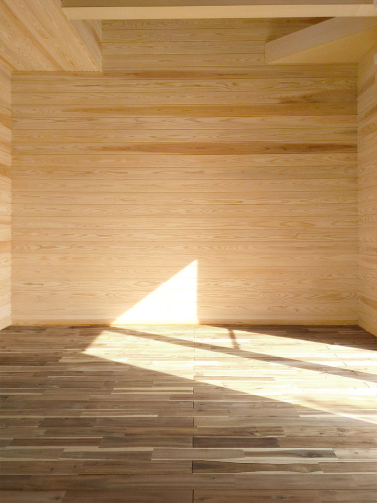 節がないことで、ログハウスのような野趣あふれる雰囲気ではなく、洗練されたシンプルでモダンな木の空間を演出できる点が大きな魅力です。