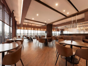 施工直後のアジアンウォルナットは濃く引き締まったブラウンカラーで照明や家具を際立たせる効果があります。