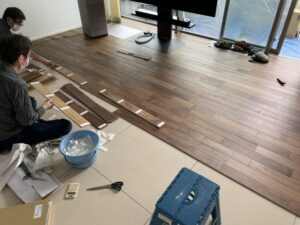 このページでは、ブラックウォルナット無垢フローリングの施工事例を紹介しています。
