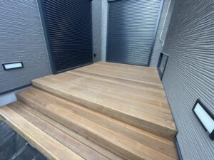 施工直後のウリンは赤褐色〜ダークブラウンの重厚感のある色味をしています。