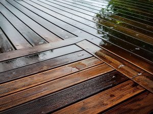 ウリンは、タンニンなどの成分を多く含むため、施工後しばらくの間、雨に濡れることで灰汁が流れ出ることがあります。
