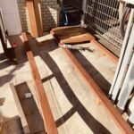 普段この上を歩行することは滅多にないので接着剤だけでの施工を試みましたが、施工後1年半が経過してやはり表面の板が外れる箇所が何か所か出てきましたのでお客様にはこの工法はお勧めできません。