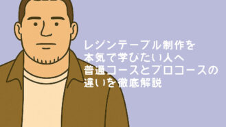 レジンテーブル制作を趣味で終わらせるか、仕事につながる技術として学ぶか。全10回・3台制作のプロコース内容を踏まえ、普通コースとの決定的な違いを対話形式で解説します。